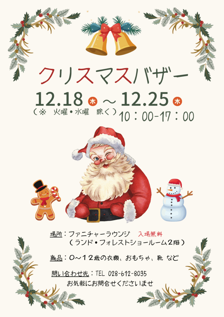 『クリスマスバザー』を開催をいたします!